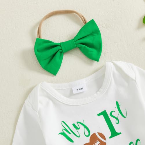 My 1st Football Season Baby Girl Outfit Newborn Letters Long Sleeve Romper Ruffle Bloomers Headband Leg Warmers Set 3