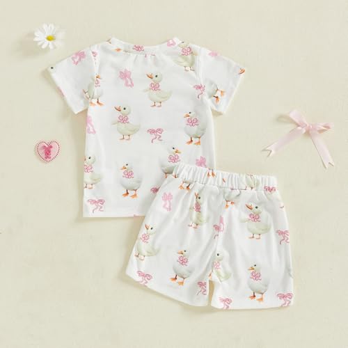 2PCS Toddler Baby Girl Summer Outfit Goose Short Sleeve T-Shirt Shorts Set Infant Girl Clothes 4