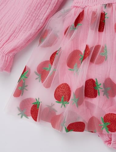 IDOPIP Baby Girls Strawberry Butterfly 1st Birthday Outfit Berry One Romper Smocked Ruffle Tutu Dress with Headband Clothes 5