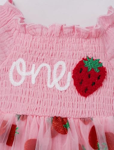 IDOPIP Baby Girls Strawberry Butterfly 1st Birthday Outfit Berry One Romper Smocked Ruffle Tutu Dress with Headband Clothes 3