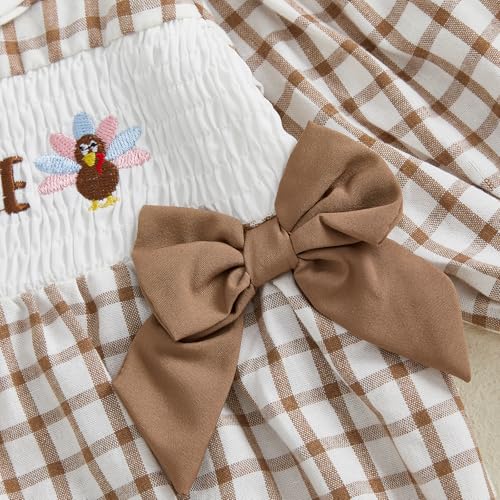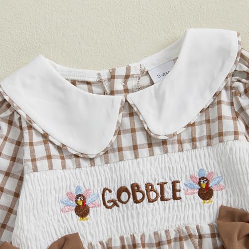• Design: Thanksgiving romper baby girl, newborn thanksgiving outfits, baby girl fall romper, baby girl long puff sleeve doll collar turkey embroidery plaid romper with two bows decor, baby girl turkey romper, cute baby girl clothes
