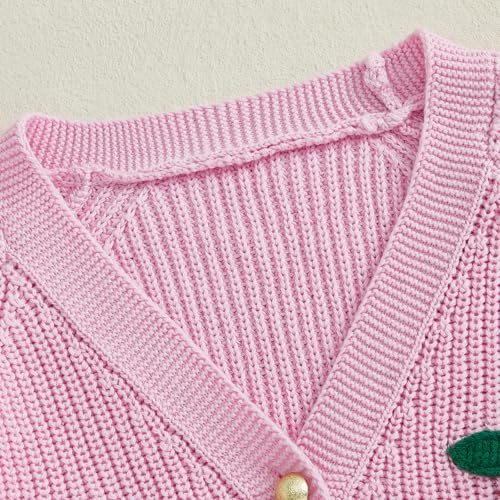 Toddler Girl Cherry Sweater Cardigan V-Neck Button Down Long Sleeve Knit Blouse Little Girls Fall Spring Clothes 7