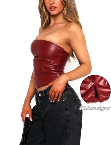 • Versatile Ruched Bodycon Leather Tops: This sexy tube tops is ideal for holiday vacation,night out club,rave party,going out,dating,concert,music festival,dance or lounge casual wear