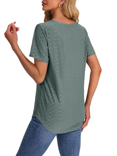 OFEEFAN Womens T Shirts V Neck Short Sleeve Casual Tops Loose Fit Basic Tees with Curved Hem 4