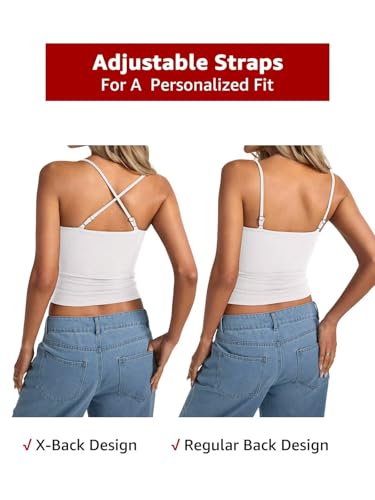 • Sexy Sleeveless Lace Trim Camisole: Square neck lace trim adds a sophisticated touch to this tank top; Backless top with adjustable spaghetti straps for a perfect fit and can be worn cross over; Available in solid & striped styles, this is a must have summer top for 2025