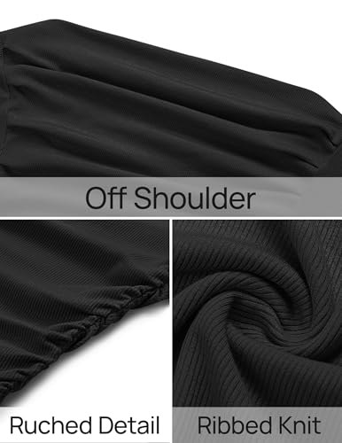 • Elevate your fashion game with the elegant ruched T-Shirt. This dressy top features an off-shoulder boat neck and long sleeve design that adds a trendy and feminine touch to your look. The slim fit silhouette of this solid color blouse accentuates your curves, enhancing your feminine charm and confidence.