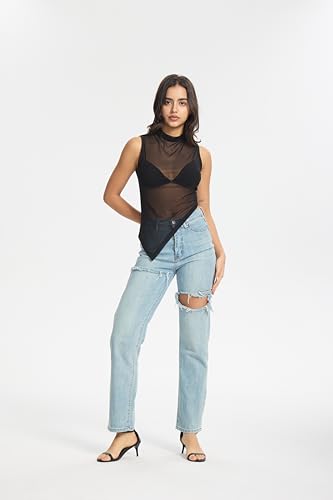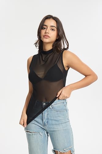 • Features: The crop tank top is featured with asymmetrical hem, which is stylish and eye-catching. The sheer mesh and see through shirt is designed with sleeveless and mock neck, providing a fashion, trendy and casual outfits. The top is a must-have clothing in your wardrobe.