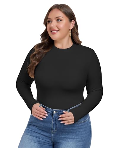 COOTRY Women's Plus Size Long Sleeve Shirts Crew Neck Slim Fitted Basic Tops Casual Outfits Fall Clothes 3