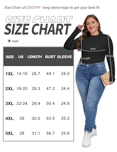 • Plus Size: COOTRY plus size long sleeve tops come in wide range sizes, from X-Large to 5X-Large, perfectly fitting all different women’s shapes. Giving a comfortable loose fit for every curvy woman.