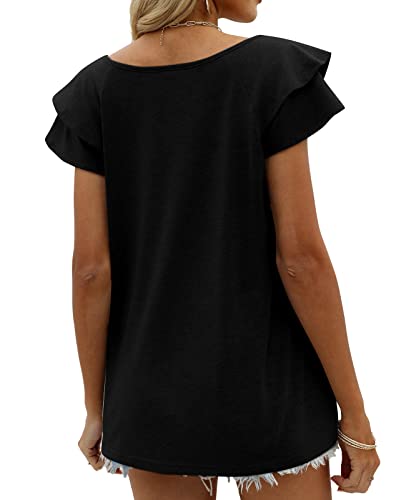 OFEEFAN Womens Summer Tops Ruffle Short Sleeve V Neck T-Shirts Casual Loose Fit 1