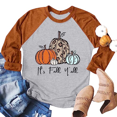 HOT ! Plus Size Halloween Pumpkin Shirt Women 3/4 Sleeve Tops Its Fall Yall Print Tshirt Thanksgiving Gift