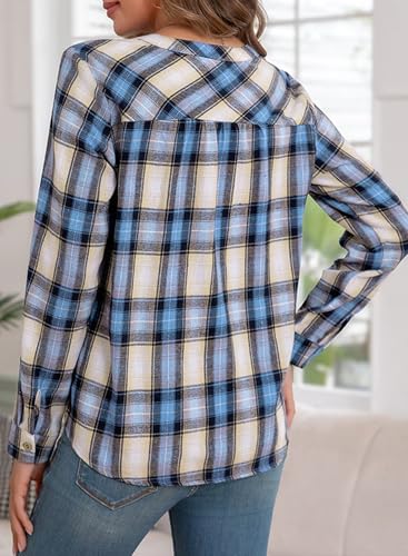 Astylish Women's V Neck Plaid Shirts Dressy Casual Blouses Button-Down Business Work Boho Tops Long Sleeve 2025 Fall Outfits 6