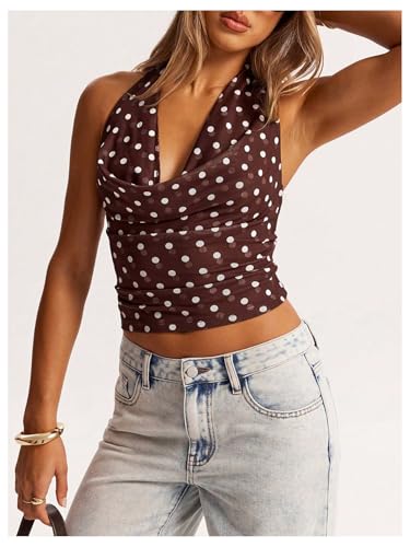 MakeMeChic Women's Polka Dots Halter Top Crop Draped Cowl Neck Sleeveless Y2K Going Out Top 5