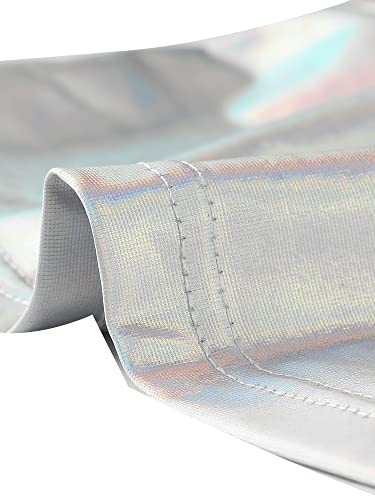 Allegra K Metallic Crop Tops for Women's Mock Neck Zip Up Sleeveless Shiny Holographic Tank Top 4
