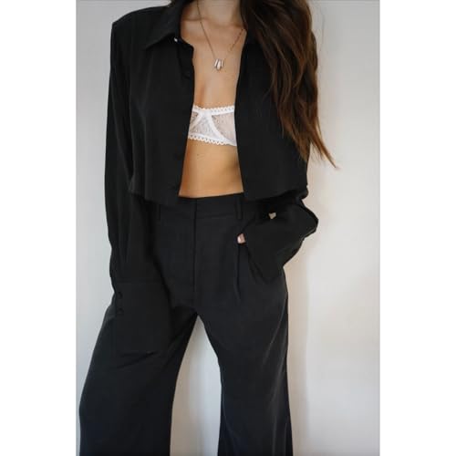• Matching: Long sleeve cropped button down blouse shirt great with leggings, jeans, denim jacket,boots, high waist shorts for spring. Perfect to layer with a cardigan, blazer for winter, easily establish a fashion stylish