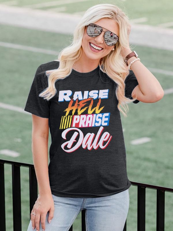 FASHGL Raise Hell Praise Dale Shirt Women Racing T-Shirt Vintage Tee Race Day Casual Short Sleeve Tops 4