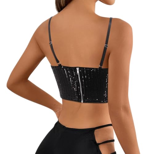More information about Vimoisa Women Reflective Metallic Tank Top Bustier Spaghetti Strap Crop Top Tight Sleeveless Tube Top Vest Blouse