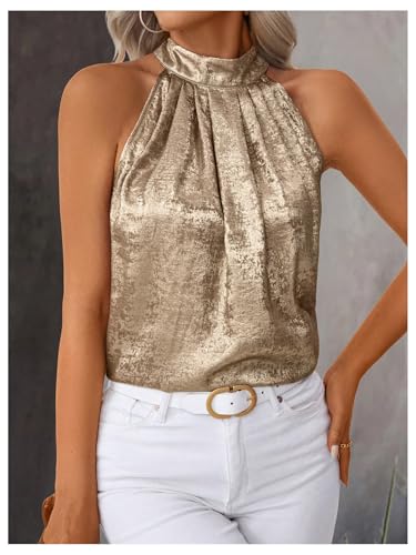 SOLY HUX Women's Metallic Halter Tops Sleeveless Mock Neck Tank Top Summer Party Cocktail Vest Shirts 6