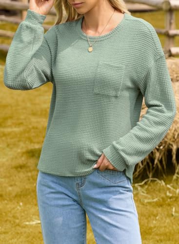 More information about Dokotoo Womens Waffle Knit Tops 2025 Oversized Long Sleeve Crewneck Shirts Business Casual Blouses Basic Shirts