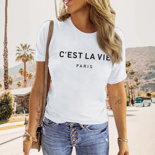 HOT ! Tuislay C'est La Vie T-Shirt Graphic Tees for Women Paris Shirts Oversized Baggy Trendy Summer Short Sleeve Loose Fit Top