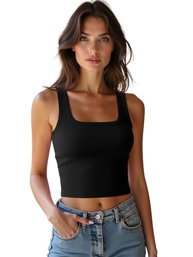 • Design: These ribbed tank tops for women designed with classic square neck, knitted ribbed tank tops, backless, strappy, cropped lenght shirts, cut basic wear, slim fit tops, solid color, create a timeless silhouette that transitions seamlessly from day to night, perfect for spring and summer, its figure-flattering cut adds a touch of elegance to casual outfits or date-night looks