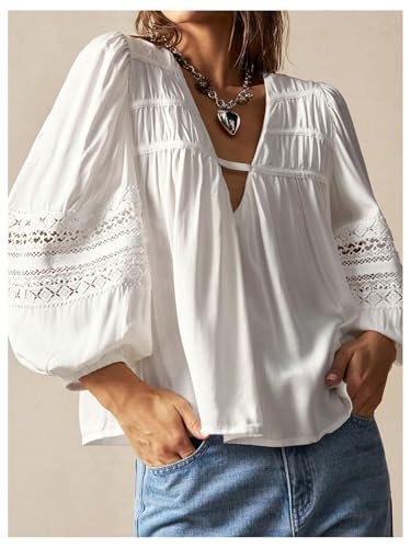 • Features: boho blouse top for women, 3/4 sleeve, loose-fit, v neck, solid color, vintage and dressy