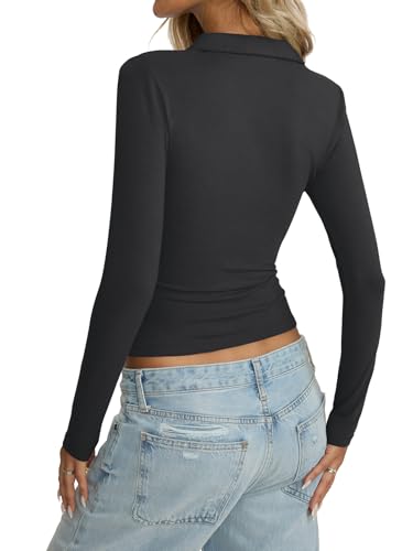 • Design: This business casual long sleeve collared top combines the trendy look of a button up polo with a sexy deep v neck, creating a slim fit look. This lapel work top allows you to customize your look, adjust the buttons to switch between a dressy casual polo collar and a more low cut neckline. Whether you're going for a basic daytime outfit or a going out look, this fitted tee is designed to match your personal style.