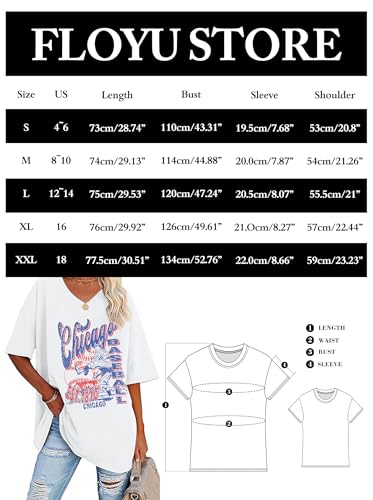 More information about FLOYU Oversized Chicago Baseball Shirt Women Baseball SeasonTops Chicago Fan V Neck Short Sleeve Shirt