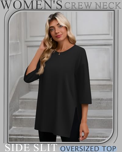 • 3/4 Sleeve Design: Our 3/4 sleeve oversized tops for women modify the arm line. The oversized loose version and side split design allow you to move freely without feeling restricted