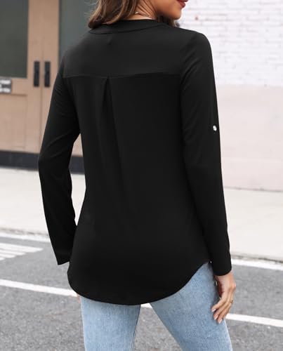 More information about LuckyMore Women's 3/4 Sleeve Tops Cuffed Zip V Neck Business Casual Work Blouses Tunic Shirts