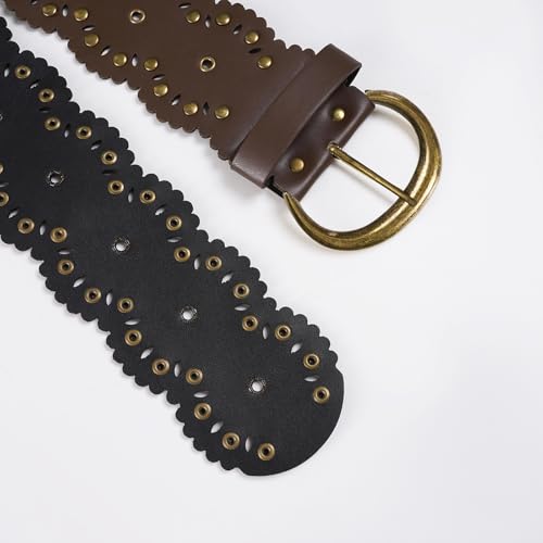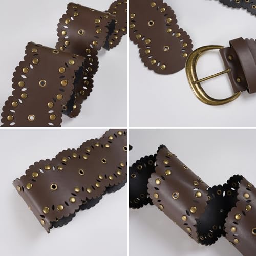 Retro Studded Wide Belt for Women And Lady 7.5cm Width PU Leather Waist Strap with Metal Rivets for Casual Outfits 5