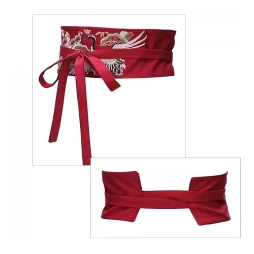 Belts For Women Clothing Waistband With Tassels Wide Tie Belt With Embroidery Crane Craft 4