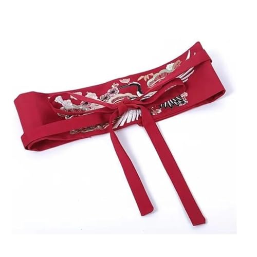 Belts For Women Clothing Waistband With Tassels Wide Tie Belt With Embroidery Crane Craft 5