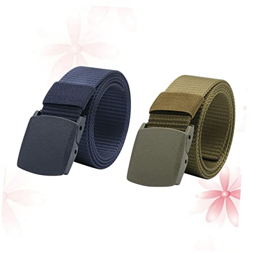 2pcs Men Canvas Waist Belt Outdoor Casual Belt Plastic Buckle Adjustable Webbing Tactical Waistband 2