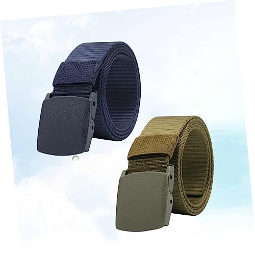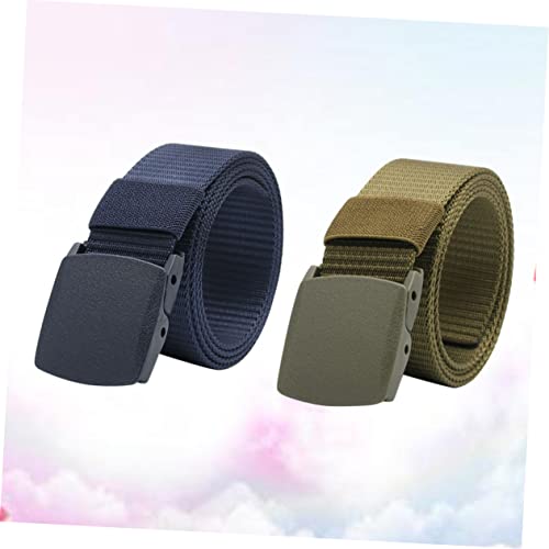 NOLITOY 2 Pcs Canvas Waist Belt Adjustable Outdoor Training Belt Plastic Buckle for Men Lightweight Casual Webbing in Green and Dark Blue for Hiking and Exploration 3