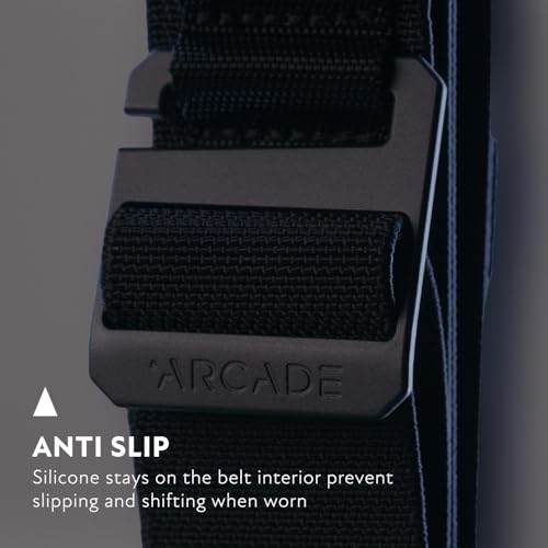 • Non-Slip Support for Heavier Loads: With the Arcade Belts' anti-slip silicone lining, ensure your belt stays securely in place, no matter how much movement or weight is involved. Perfect for those tackling multiple tasks, this stretch belt men can trust for secure support; keep tools or heavier apparel comfortably in place. The result is confidence and convenience, making it ideal for hiking, skiing, or even as a tactical belt.