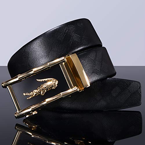• Easy for daily use - Take slide the leather belt into the sliding buckle and pull track belt through,click buckle auto lock the belt. If release the ratchet belt, gently push the lever on the side of the automatic buckle and lock will release