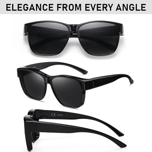 • SUNGLASSES FIT OVER GLASSES: Specifically crafted for prescription glasses wearers, these polarized sunglasses boast a large frame and wide temples, effortlessly accommodating your existing glasses. Suitable for people who wear contact lenses or with normal vision can also wear them alone.