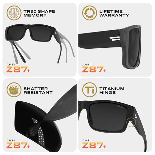 • LENS FEATURES: Polycarbonate Polarized 100% UV400 Protected Scratch Resistant Shatter Resistant Hydrophobic Anti-Reflective Inner Coating | High Velocity Impact ANSI rated z87+