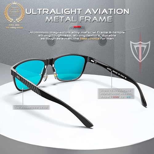 • ATTCL Men's Aviation Al-Mg Metal Frame Polarized Sunglasses men- UV400 Protection, Lightweight Square Sun glasses for Driving 18587blue