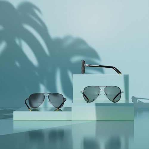• [Versatile Design]:These metal frame aviator sunglasses features a sturdy spring metal hinge and adjustable nose pads for a custom fit, ideal for outdoor activities such as driving,fishing,wlaking etc.