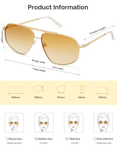 • PRODUCT DIMENSION - Lens Width: 59mm | Lens Height: 47mm | Nose Bridge: 14mm | Temple Length: 141mm