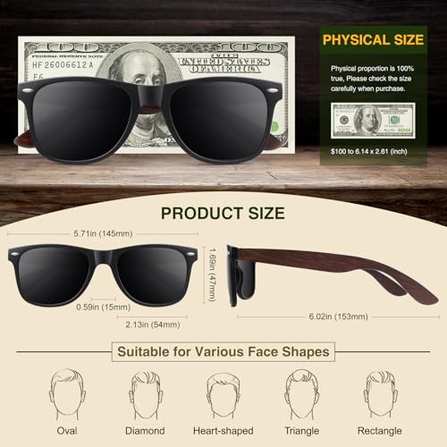 Polarized Sunglasses for Men Women with Wood Temples,Retro Dark Lenses Driving Fishing UV400 Protection 5