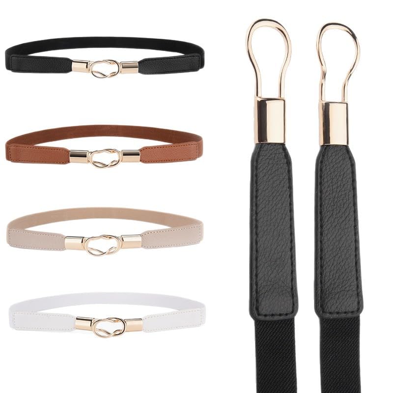 2 Pack Women Belts Gold Buckle and Stretchy Waist Belt For Jeans Dresses Pants 4