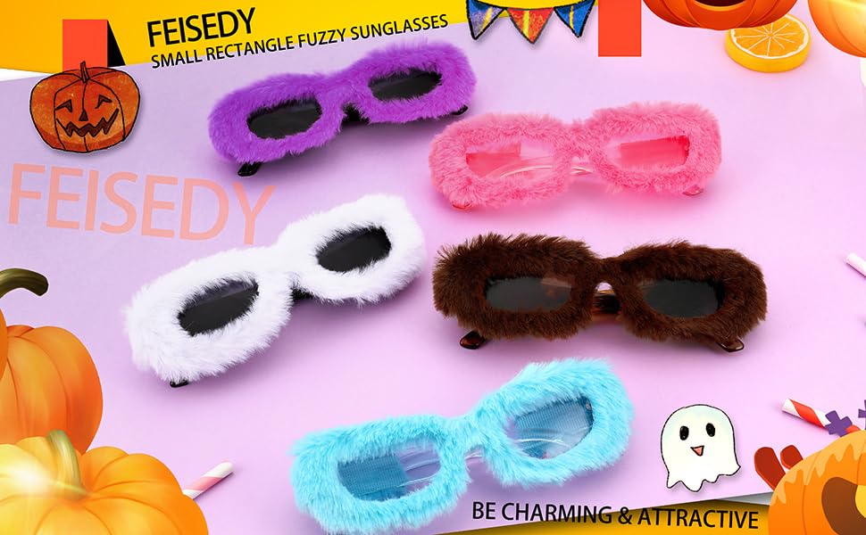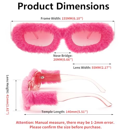 More information about FEISEDY Women Plush Fuzzy Small Rectangle Sunglasses Punk Soft Velvet Shades Ladies Handmade Party Cosplay Eyewear B4093