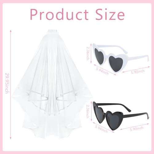 • Heart Sunglasses and Veil Set: Includes 1 white veil, 1 pair of white bride sunglasses, and 7 pairs of black bridesmaid sunglasses. Perfect for bachelorette parties and a stylish match for any bride and bridesmaid outfits.