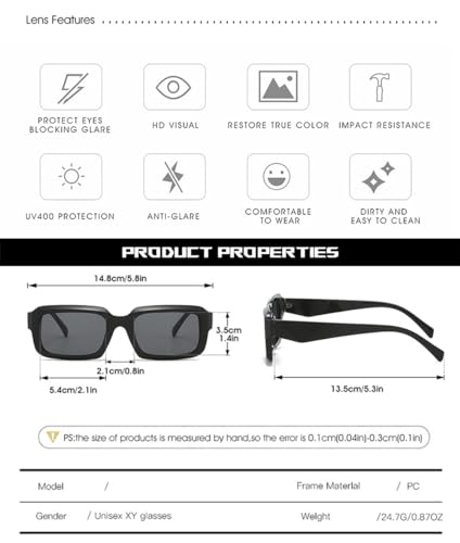 • HYLLE VINTAGE DESIGN - Not only is the simple and compact design makes thick frame looks very delicately,but also the rectangle shape frame makes the overall look of the sunglasses more retro.