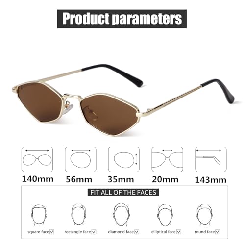 • Geometric Metal Frame with Tinted Lense: Sleek and Thin Gold Irrectangle Shape with Colored Lens,Grey ,Brown, Champagne lenses Suits for a modern, minimalist look that works indoors and out,whether you're on a beach vacation, a hiking trip, or simply driving around town, the sturdy frame and striking lenses will keep these sunglasses in top condition and on - trending