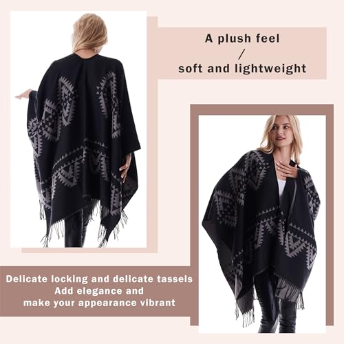 Women's Plaid Shawl Wrap Warm Cardigan Open Front Poncho Cape for Central Air Conditioning or Public Chilly Places 4