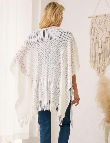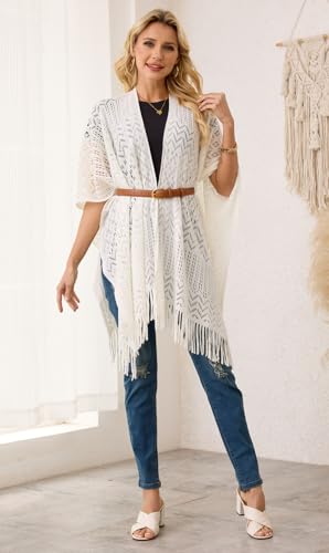 Ferand Women's Fringe Crochet Shawl Wraps Lightweight Open Front Poncho Cardigan for Spring Summer 4